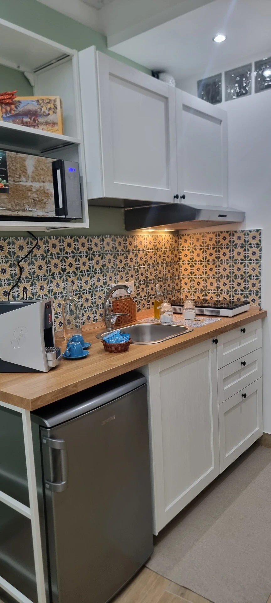 La cucina, completamente attrezzata, è perfetta per chi ama la praticità senza rinunciare al piacere di cucinare. Dotata di frigorifero, piano cottura, forno e un set completo di utensili, vi permetterà di preparare i vostri pasti con facilità e comodità.