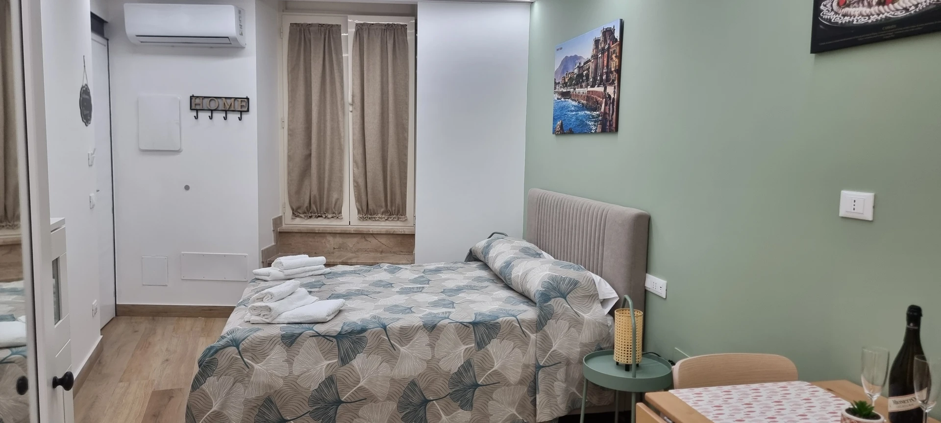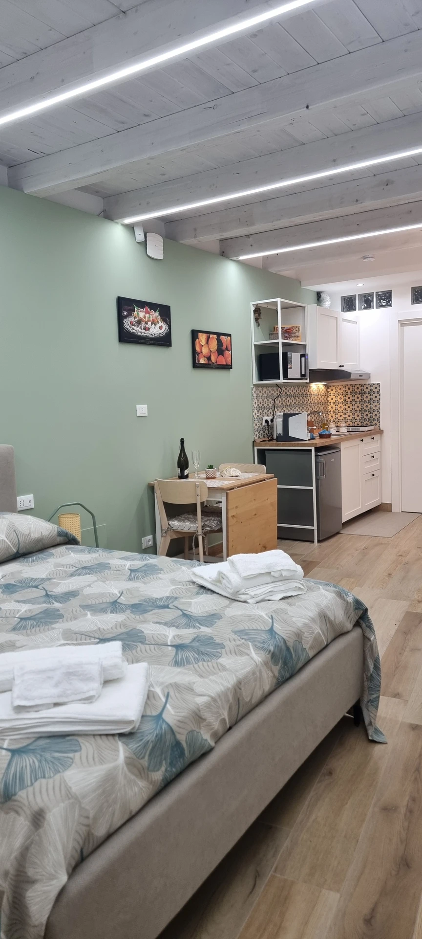 Grazie alla sua posizione, l’appartamento offre una suggestiva vista sulla città, che aggiunge un tocco di fascino al vostro soggiorno. Il comodo letto matrimoniale è studiato per garantire un riposo rigenerante, immersi in un ambiente raffinato e curato nei minimi dettagli.